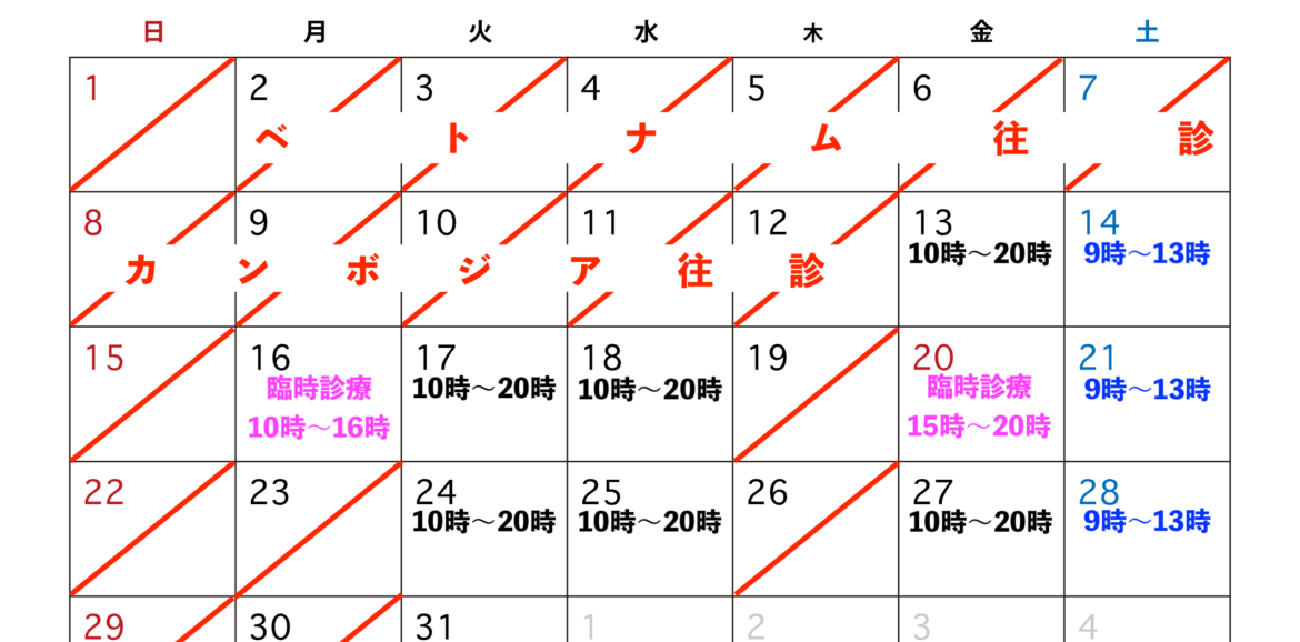 3月1日(日)〜12日(木)まで、海外出張のため休診とさせていただきます。